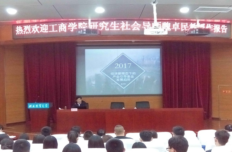 4月24日下午,河北信投集团董事长、太阳成集团tyc33455cc官方网站研究生社会导师魏卓民来公司作“经济新常态下的产业引导基金发展趋势”主题报告。公司党委副书记、董事长纪良纲教授出席此次会议并颁发导师聘书。