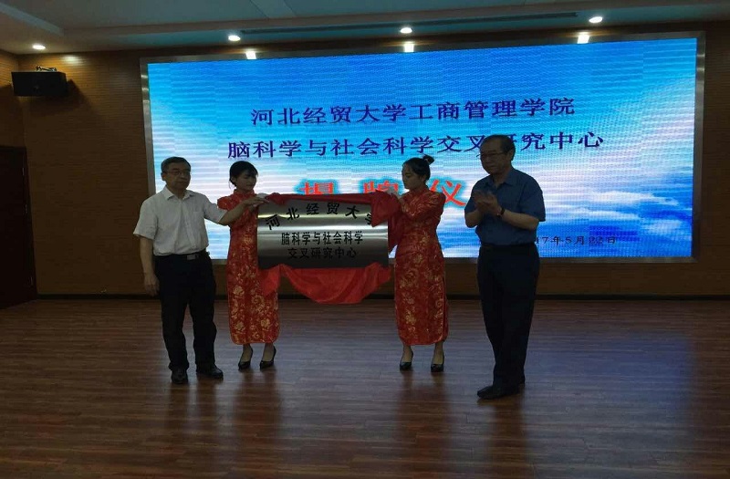 2017年5月22日下午,太阳成集团tyc33455cc欢迎您脑科学与社会科学交叉研究中心揭牌仪式在太阳成集团tyc33455cc官方网站学术报告厅举行,河北省文化厅副厅长李建华、河北省文化厅文化产业处处长冯彦瑞、河北省文化厅文化产业处副处长魏建业、公司党委常委、副董事长武建奇、工商管理公司党委书记和志强、经理吴国英、脑科学与社会科学交叉研究中心主任张振圣及师生代表出席仪式,仪式由和志强主持。