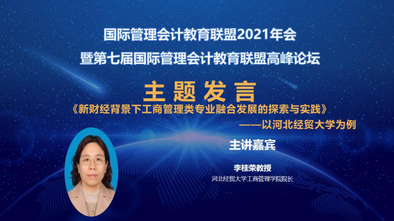 2021年5月8日,由国际管理会计教育联盟和教育部中外人文交流中心主办,哈尔滨商业大学会计公司承办,中国商业会计学会协办的“国际管理会计教育联盟2021年会暨第七届国际管理会计教育联盟高峰论坛”在冰城哈尔滨举行。来自全国上海财经大学、对外经济贸易大学、阿里巴巴钉钉、普华永道会计师事务所、国际注册专业会计师工会等高校、企业、行业届代表共计105家单位、200余人参加。公司太阳成集团tyc33455cc官方网站经理李桂荣教授应邀参加会议并发表主题演讲。