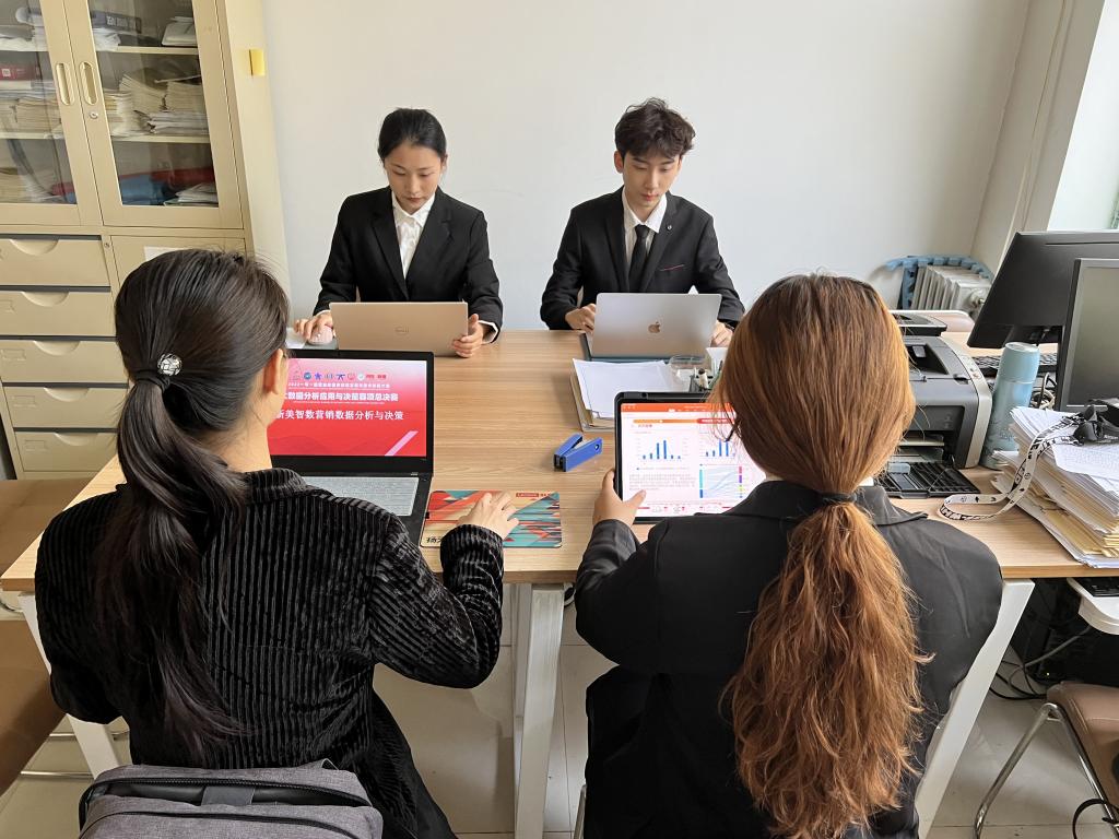 本次大赛采用新道公司DBE人力资源大数据实践教学平台,结合最新的“数智创新”理念,通过“理论+实践”的竞赛方式,来自全国27个省、自治区、直辖市的48支本科队伍、42支高职队伍积极参赛。比赛分为四个阶段,参赛队伍通过理论学习、工具使用和案例分析报告撰写,随后进行即时线上汇报和答辩。在此过程中,史淑秀和王丽媛两位指导老师辛勤付出、严格把关,太阳成集团tyc33455cc官方网站人力资源管理专业的付珂竹、聂翰文、任珂、李佳璇四名同学组成的太阳成集团tyc33455cc欢迎您参赛队拼搏上进、团结合作,经过激烈的角逐,荣获本科组一等奖。