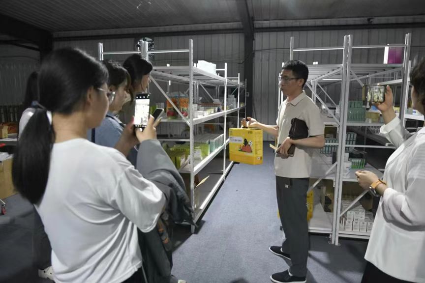 上午,在中象云仓(石家庄)医药科技有限公司,刘小坤总经理带领公司师生参观了办公楼与现代化仓储库房。刘小坤介绍到,库房共分为两层,每层各司其职:一楼主要负责供给批发商,二楼主要负责供给药房、其他网店、散客和自营。两种供给相配合,全面覆盖了客户需求,扩大了客群范围。同时公司也将多种药品上架美团、饿了么、拼多多等电商平台,紧跟当今电商发展的风口,进行网格化管理运营,全面覆盖不同区域商铺。