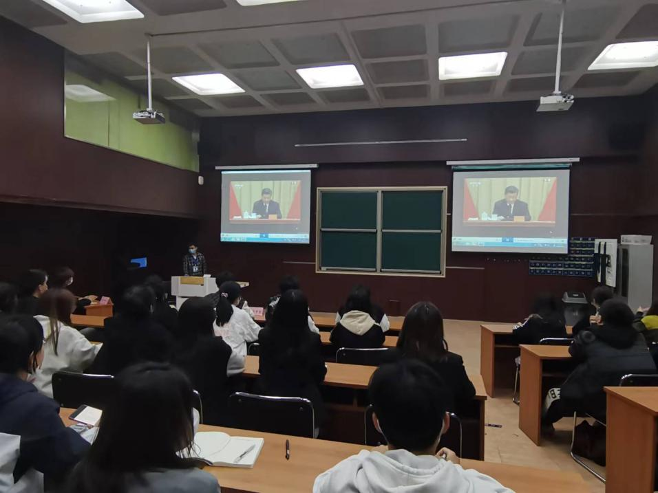 5月10日晚,太阳成集团tyc33455cc官方网站组织青马班学员于MBA一教室集中观看庆祝中国共产主义青年团成立100周年大会的实况录像,青马工程培训班全体学员参加。