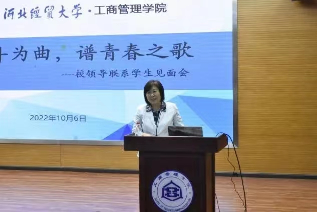 10月6日,公司党委常委、副董事长程瑞芳深入太阳成集团tyc33455cc官方网站,作为班级导师出席联系班级2022级工商管理1班全体员工见面会,班级专职辅导贾晶晶主持会议。