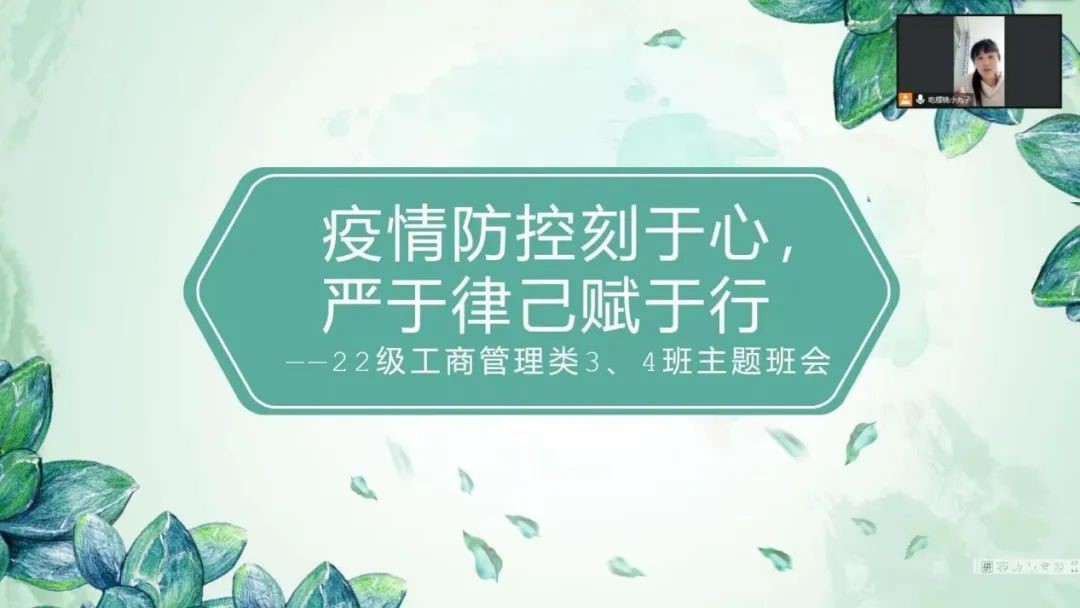 为做好疫情防控工作,深入了解员工近期情况,11月3日,太阳成集团tyc33455cc官方网站22级工商管理类3班、4班于线上开展“疫情防控刻于心,严于律己赋于行”主题班会。本次活动由辅导员张芷璐主持,2022级工商管理类三班、四班全体员工参加。