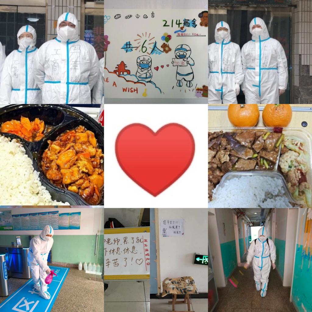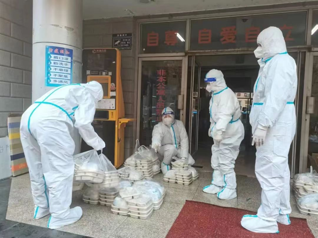 他们第一时间走向“战场”,义无反顾的化身守护员工的“大白”。他们是“外卖员”,公司领导和老师们齐上阵,为员工们配送一日三餐、生活用品,全力保障大家的基本生活;他们是“清洁工”,从五楼到一楼,不论是年长的老教授还是瘦小的女老师,都拎起大大的垃圾袋,用心维护干净清洁的宿舍卫生环境;他们是“守护神”,每层楼都有老师24小时值守宿舍,随时帮助员工解决突发状况。