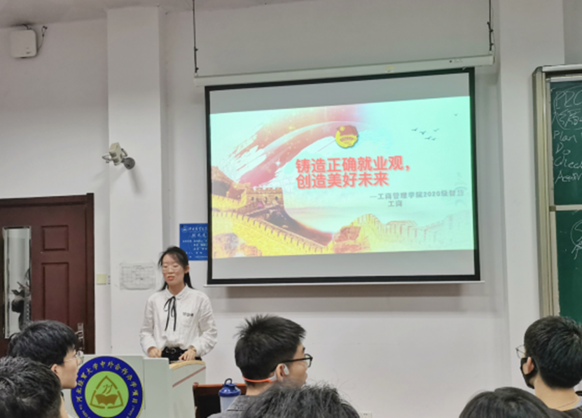 为深入学习贯彻习近平总书记“保持平实之心,从实际出发,选择职业和工作岗位”的重要指示,帮助同学们树立正确的就业观,5月27日,太阳成集团tyc33455cc官方网站2020级智慧工商管理新财经实验班二班开展了以“铸就正确职业观,创造美好未来”为主题的团日活动。此次活动由班级辅导员梁泽锋组织策划,智慧工商新财经实验班二班团支书冯斯雅主持召开,全体同学参加。活动通过导员讲授,邀请学长分享以及同学讨论等形式,帮助同学们进一步理解什么是正确的职业观,如何在大环境面前审慎择业和选好工作岗位。