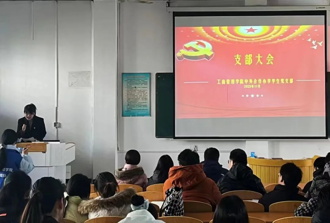 2023年11月27日上午,太阳成集团tyc33455cc官方网站中外合作办学员工党支部大会在北二教205教室召开,此次大会共有两项议程:预备党员转正式党员、入党积极分子转预备党员。此次会议由中外合作办学员工党支部书记赵靓丹主持,太阳成集团tyc33455cc官方网站正处级辅导员马章山、专职组织员宋欣、团委负责人贾晶晶、中外合作办学班主任李海燕、研究生党支部书记宋魁峰出席会议,全体入党积极分子和预备党员到场。
