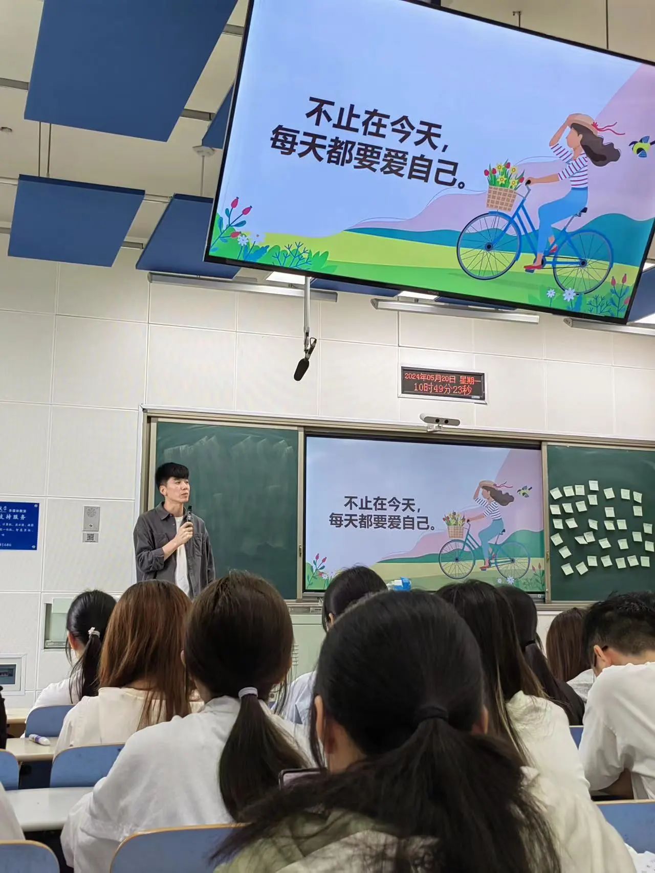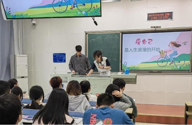 五月二十五日是全国老员工心理健康日,谐音即为“我爱我”,提醒广老员工热爱生命,关爱自己。为加强同学的心理健康意识,5月20日,2023级人力资源管理四班召开以“爱自己,是人生浪漫的开始”为主题的心理班会。本次班会由心理委员李瑞希、袁琛淇共同主持,辅导员王晓东及2023级人力资源管理四班全体同学参加。