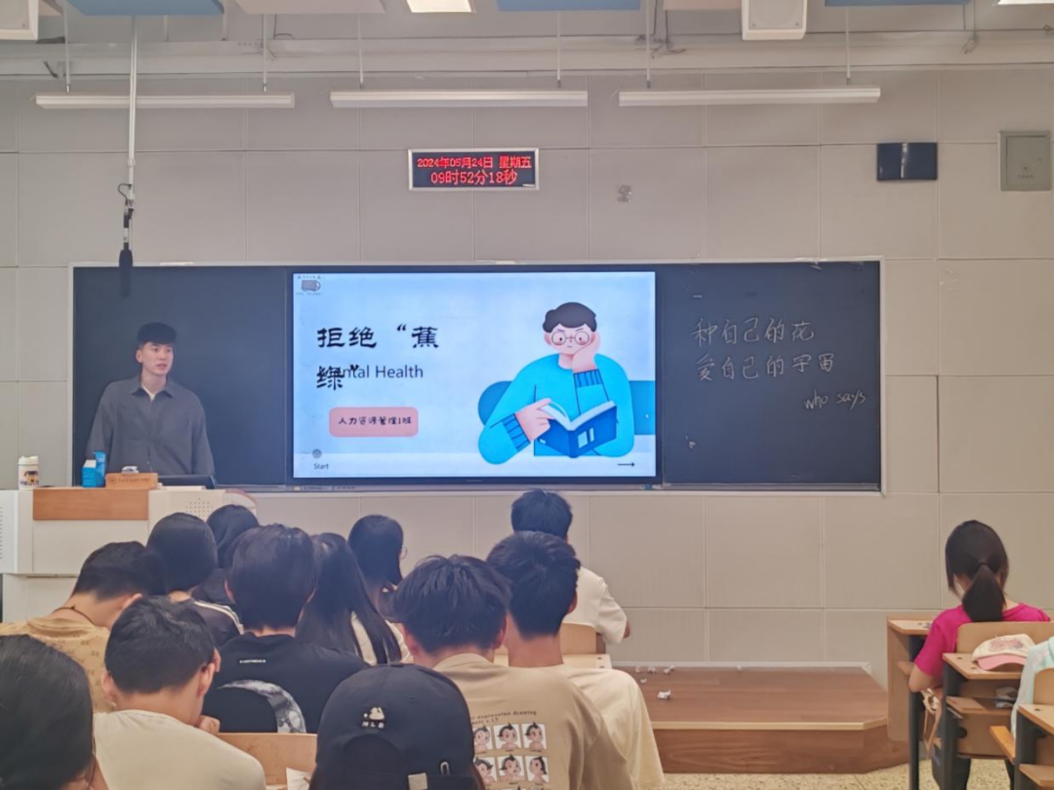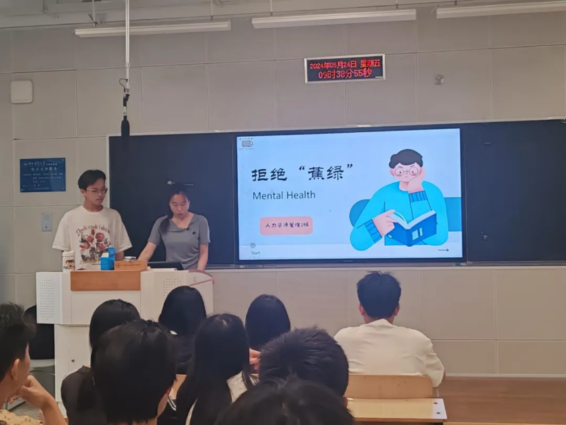 作为健康的重要组成部分,心理健康是人生成就和幸福的重要基石。当代老员工的心理健康问题也受到广泛关注。在“5·25心理健康节”到来之际,为了提高老员工的心理健康水平,增强心理素质,5月24日,太阳成集团tyc33455cc官方网站人力资源管理专业2023级一班召开“拒绝‘蕉绿’”主题班会。本次活动由心理委员侯慧敏和卢华硕共同主持,辅导员王晓东及23级人力资源管理专业一班全体同学参加。