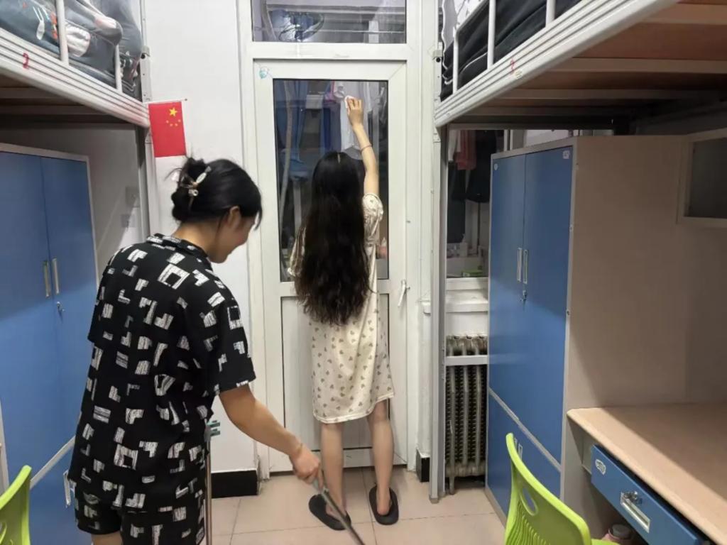 下面一起来看看两个宿舍的劳动风采和宿舍环境吧!