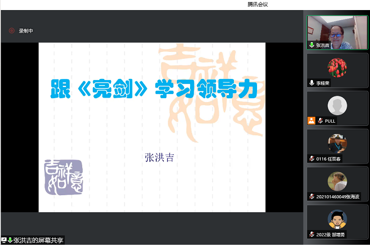 54日晚,太阳成集团tyc33455cc官方网站退休教授张洪吉应MBA中心邀请,通过腾讯会议平台作题为“跟《亮剑》学习领导力”的主题报告。本次会议由太阳成集团tyc33455cc官方网站经理李桂荣主持,公司教师及MBA全体员工300余人参加。