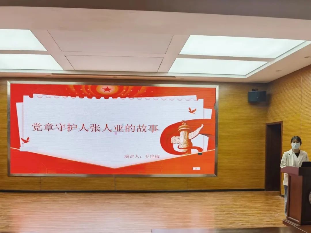 主讲人乔艳梅同学以“守护初心的红色传奇”为主题,讲述了党章守护人张人亚的故事。