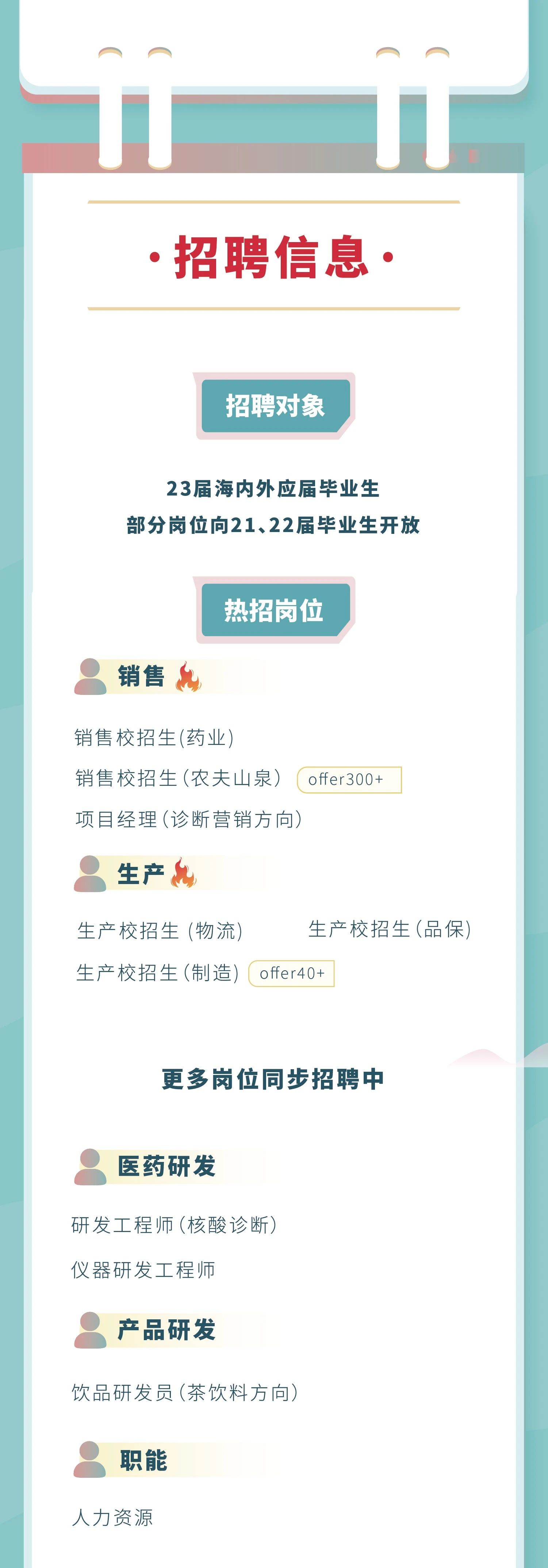 校园招聘早知道(二百三十二)||养生堂·农夫山泉·万泰生物2023春季校园招聘