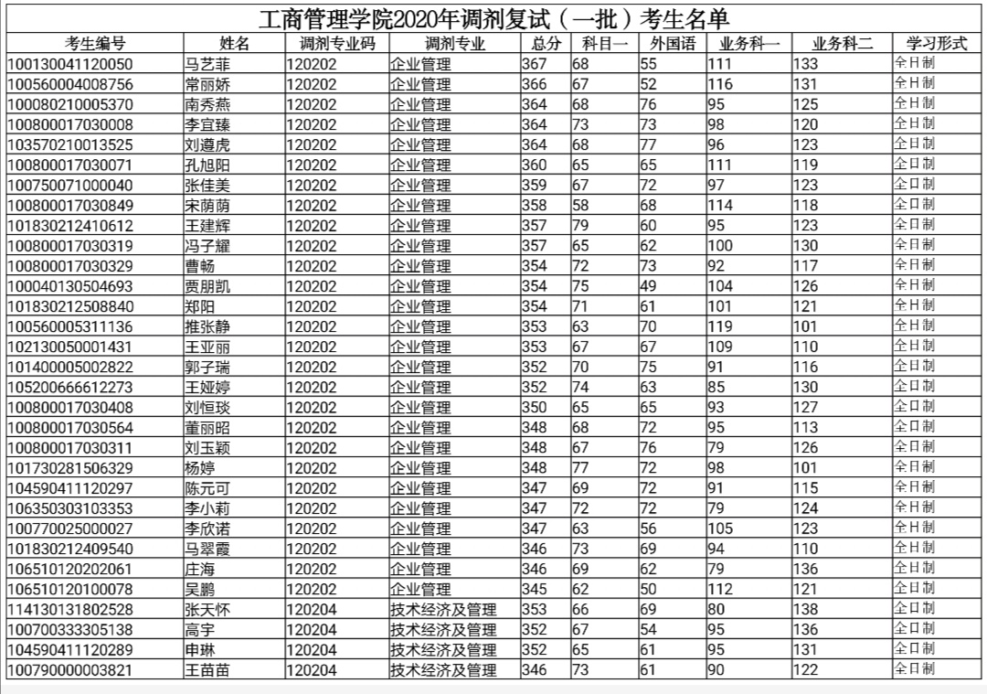 太阳成集团tyc33455cc官方网站2020年调剂复试(一批)考生名单