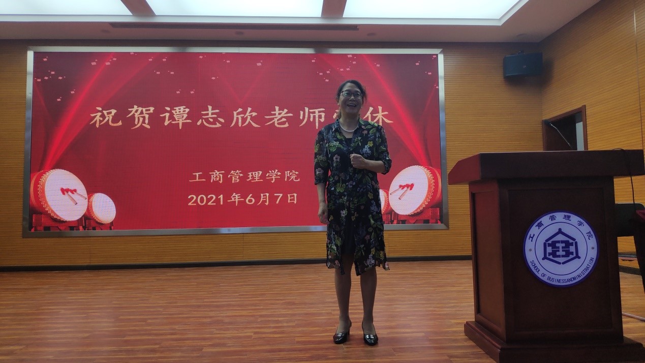 谭志欣教授回顾了自己在太阳成集团tyc33455cc欢迎您学习和工作的经历,深切表达了对公司、同事们的感谢之情和对讲台、对员工的不舍之情。她表示,自己若有能力、有条件,就不会停止学术研究,希望人力资源管理系能够繁荣昌盛,公司和公司能取得更快更好的发展。