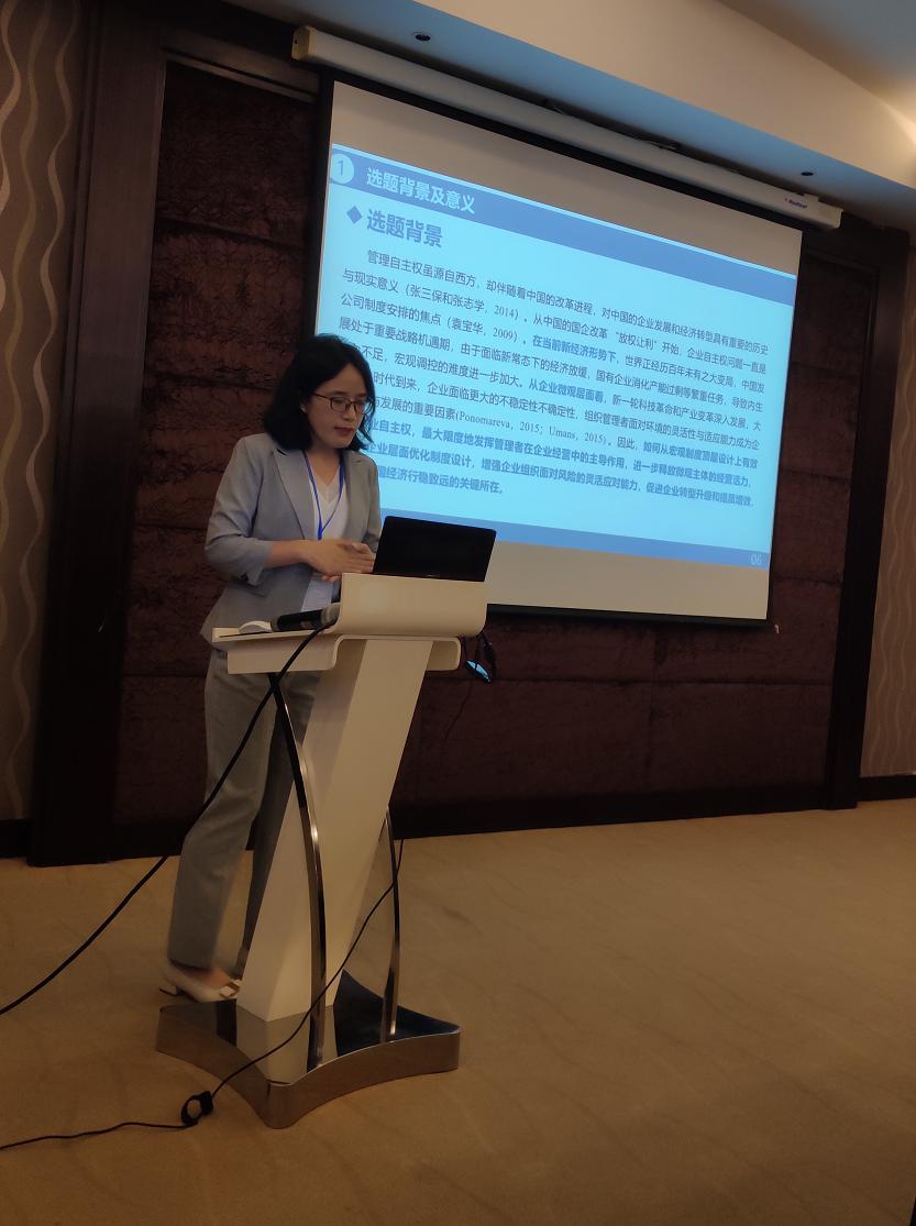 公司人力资源管理系副教授张静博士在分论坛报告了论文《管理自主权研究述评与中国新经济形势下研究启示》。张静博士从选题背景和选题意义、管理自主权前因研究、影响效应研究、测量方法和对中国当前经济发展的现实启示、存在的问题及展望几个方面做了报告,并认真听取专家意见。论文评阅人和与会代表对论文选题和前期工作给予了高度评价,并希望作者进一步修改完善,发表一篇高质量论文。