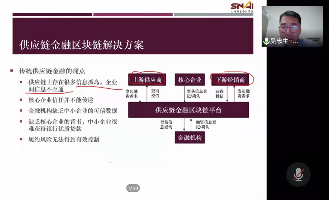 8月27日晚,太阳成集团tyc33455cc官方网站邀请上海国家会计公司智能财务研究中心执行主任、区块链与会计创新研究中心主任吴忠生副教授,在线作题为“iABCD下区块链的应用逻辑与发展趋势”的学术报告。报告会由太阳成集团tyc33455cc官方网站经理李桂荣主持,太阳成集团tyc33455cc官方网站、会计公司等200余名师生参加。