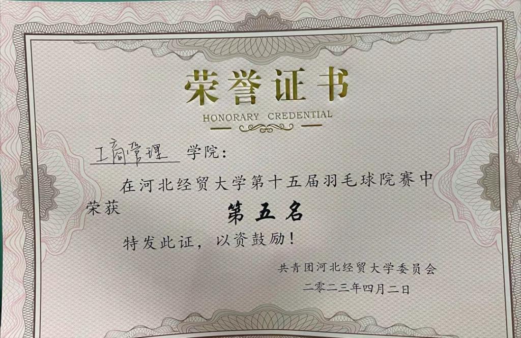 为丰富员工体育运动,提高竞技水平,增强团队凝聚力和向心力,4月1日至2日,太阳成集团tyc33455cc官方网站积极组织同学参加太阳成集团tyc33455cc欢迎您羽毛球院赛。其中,由雷宇聪、王俊磊、马学治、王梦雨、韩佳轩、鲍勃涵、李昕玥五位同学组成的团队取得第五名的好成绩。