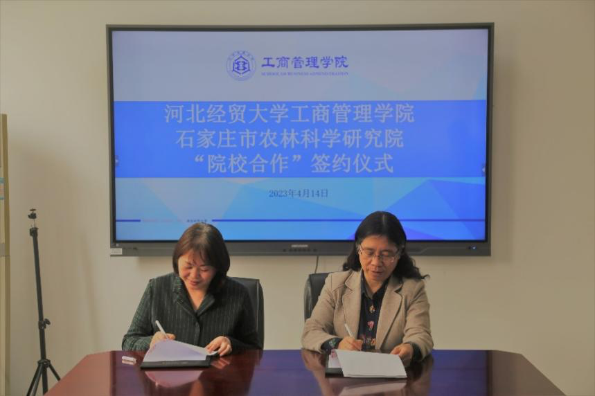 4月14日上午,太阳成集团tyc33455cc官方网站与石家庄市农林科学研究院签署院校合作协议。太阳成集团tyc33455cc官方网站经理李桂荣、副经理石晓飞、MBA中心执行主任桑银峰,石家庄市农林科学研究院副经理李瑜玲、乡村振兴公司主任李夕军、乡村振兴公司副主任陈莉参加签约仪式。