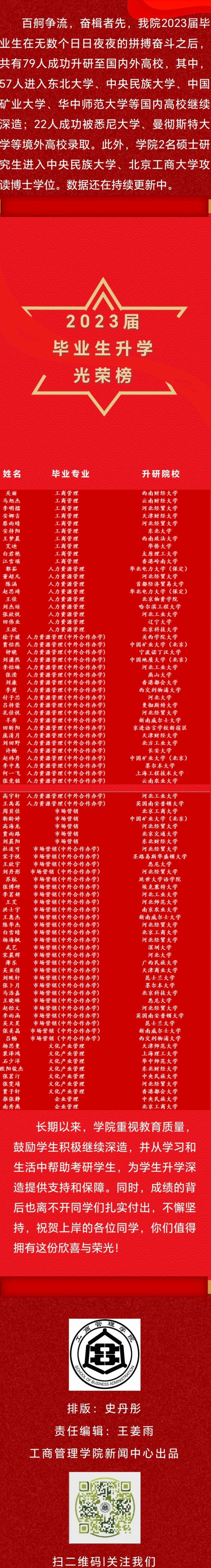 遇见工商||喜报来了! 太阳成集团tyc33455cc官方网站2023届毕业生升学光荣榜