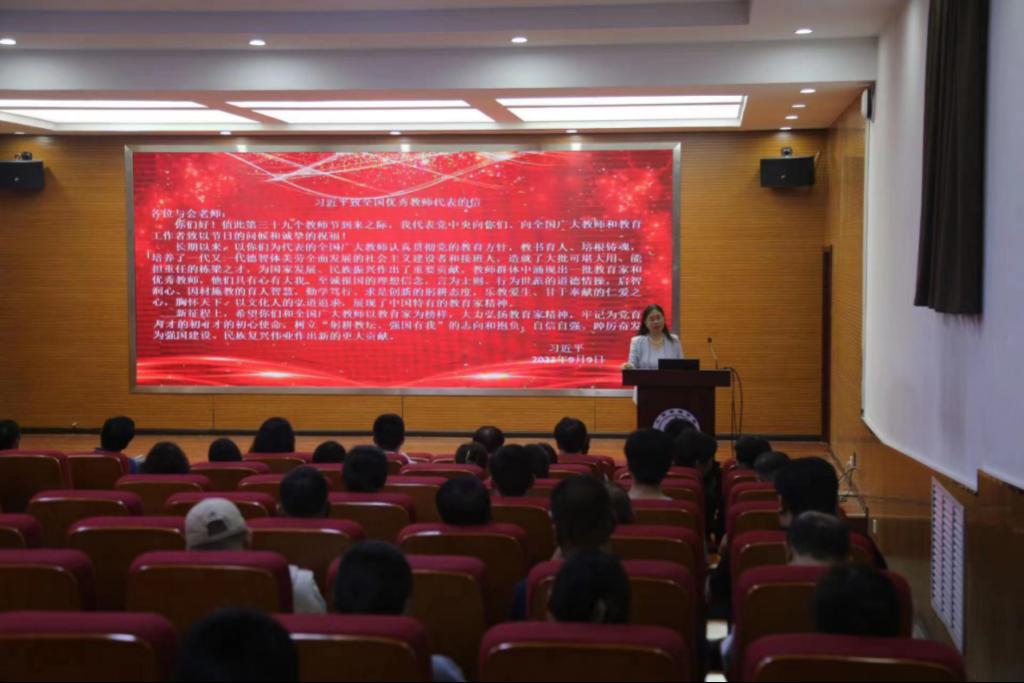 会议伊始,李桂荣结合本学期公司工作要点和公司工作计划,激励全院教职工要以更饱满的精神投入到新一轮公司产品审核评估工作中,全力迎接本科公司产品审核评估工作;要重视人才引进和青年博士培养力度,为公司事业发展和专业建设提供坚强保障。接下来,李桂荣带领全体教师重温了今年教师节前夕习近平总书记致全国优秀教师代表的信,号召全体教师向优秀教师学习,牢记为党育人、为国育才的初心使命,坚持立德树人,培根铸魂,为培养德智体美劳全面发展的社会主义建设者和接班人做出更大贡献。