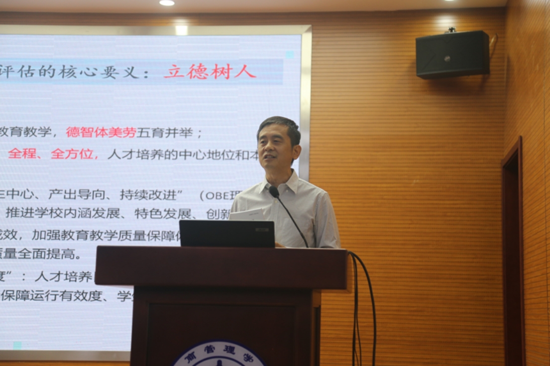 王胜洲副经理带领全体教师学习本科公司产品审核评估相关材料,介绍公司自评自建过程中主抓的工作内容和取得的成效,强调对接下来的线上、线下评估工作要进一步提高认识,高度重视,做好评估工作的相关准备,进一步完善“员工中心、产出导向、持续改进”的质量文化。