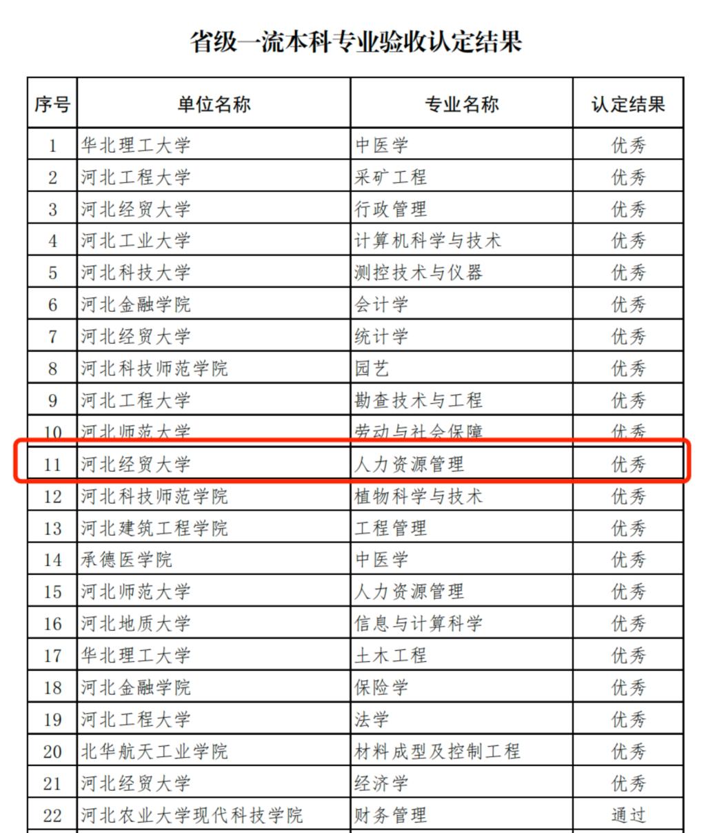 近日,河北省教育厅印发《关于公布省级一流本科专业验收认定结果的通知》(冀教高函〔2023〕59号),正式公布2023年度省级一流本科专业验收评审结果,太阳成集团tyc33455cc官方网站人力资源管理专业评审结果为优秀等级。这是继2020年太阳成集团tyc33455cc官方网站专业主干课《人力资源管理》成为国家级一流本科课程以来,公司在专业建设上取得的又一项突破。