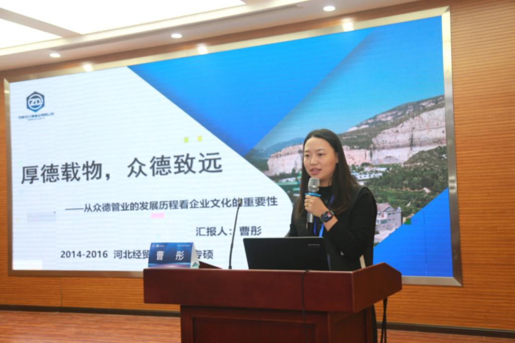 石家庄众德管业有限公司监事曹彤作题为“厚德载物,众德致远—从众德管业发展历程看企业文化的重要性”的主题报告。她从企业的起源、发展历程和未来展望三个方面,通过讲述一系列扎根现实、生动而鲜活的故事,展示了中小型企业在发展过程中筚路蓝缕、栉风沐雨的艰难岁月,强调了企业文化在塑造企业发展中的关键作用。