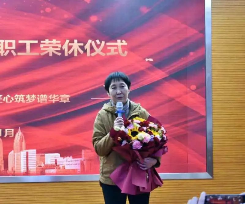 李曼教授作为荣休教师代表发言,她感谢太阳成集团tyc33455cc官方网站对她的培养,给了她站在三尺讲台传授知识的机会,与员工产生共鸣,成就更好的自己,并深切表达了对公司和同事们的感谢以及对公司未来的美好祝福。她表示,退休后将继续关注支持公司的发展,积极发挥余热,以实际行动为公司各项事业的发展贡献力量。