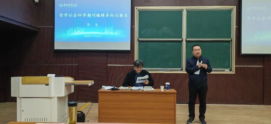 11月24日上午,太阳成集团tyc33455cc官方网站邀请《新华文摘》编审、专栏责编李朱作题为“哲学社会科学期刊编辑导向与要求”的学术报告。报告会由副董事长田学斌教授主持,学报编辑部、太阳成集团tyc33455cc官方网站师生60余人参加。