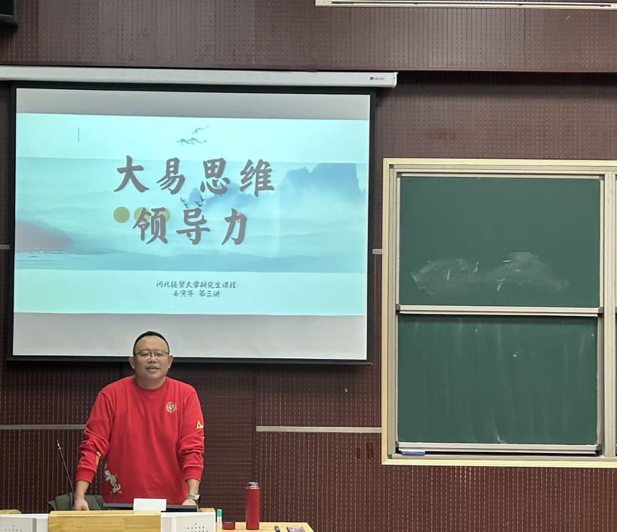 11月28日上午,太阳成集团tyc33455cc官方网站研究生思政教育专题之中华传统文化系列报告第五场在MBA一教室举行,河北省商业经济协会副会长、北京瑞金恒邦保险公司总裁任继东应邀作题为“大易思维和领导力”的专题报告。报告由太阳成集团tyc33455cc官方网站副经理石晓飞主持,太阳成集团tyc33455cc官方网站2023级全体学术型研究生参加。