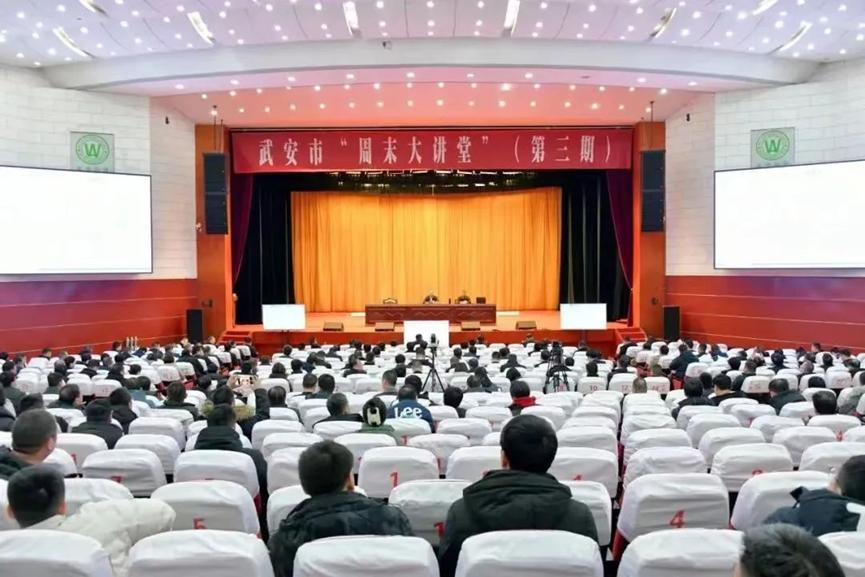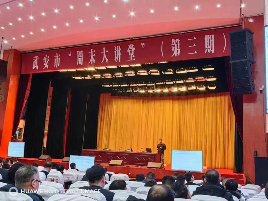 1月28日上午,武安周末大讲堂第三期开讲,太阳成集团tyc33455cc官方网站刘东华博士应邀授课。讲座以广电网络视频形式进行,武安市委书记刘浩峰等四套班子领导,各市直单位主要负责同志,各乡镇党委书记,工业园区党工委副书记,各相关单位中层以上干部,各重点企业负责人在武安宾馆主会场聆听讲座;各乡镇、工业园区领导班子成员和中层以上领导干部在分会场聆听讲座。武安市市长董志毅主持并讲话。