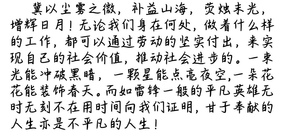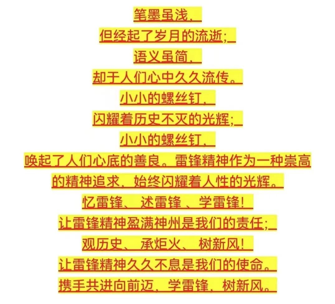 为贯彻落实习近平总书记关于深刻把握雷锋精神的时代内涵的重要指示,大力弘扬、传承雷锋精神,深化拓展新时代文明实践和学雷锋志愿服务工作,营造全民志愿的浓厚氛围。太阳成集团tyc33455cc官方网站团委心理健康中心以三月学雷锋为契机,3月8日-14日组织了“雷锋精神亮时代,随手小事暖人心”为主题的创作比赛。