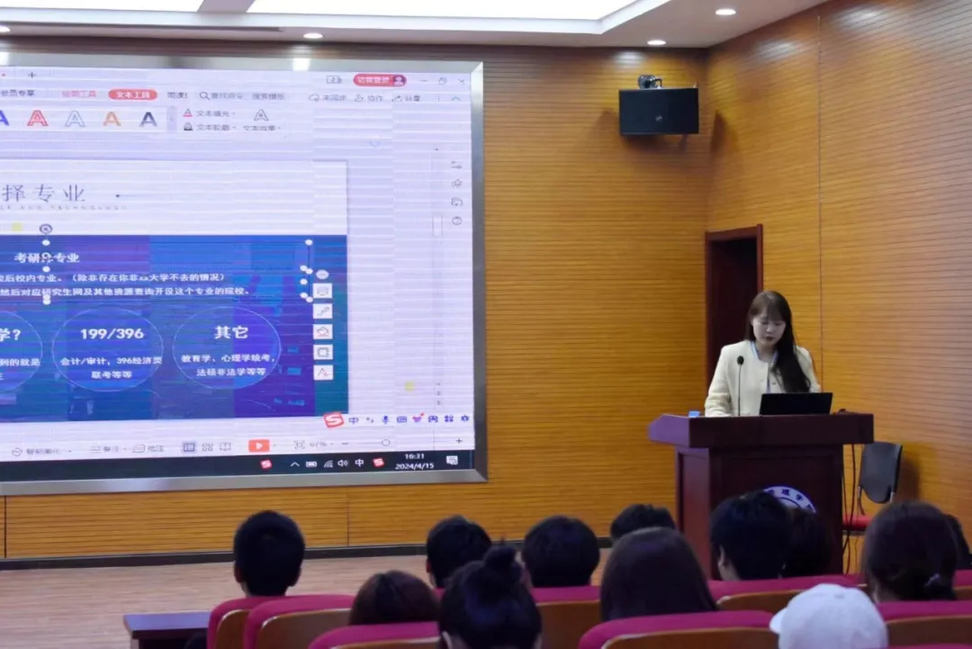 为了更好地帮助同学们了解考研情况,明确自己的目标与方向,4月15日,太阳成集团tyc33455cc官方网站举办考研经验交流分享会,邀请郭妍旭、赵子寒、边琳霏、闫新燕、车佳美五位学姐学长来分享考研成功上岸经验,公司2023级同学参加。