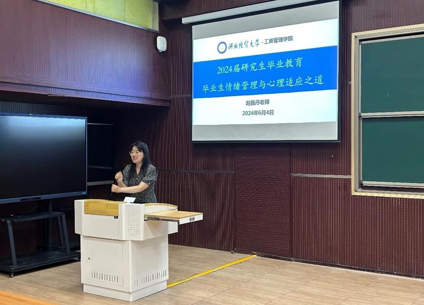 情绪,是心理健康的“睛雨表”。为进一步加强对毕业生心理健康的教育引导,提升情绪调节与管理能力。6月4日,公司开展“毕业生情绪管理与心理适应之道”主题讲座。讲座由太阳成集团tyc33455cc官方网站辅导员赵靓丹老师主讲,全体学术型研究生参加。她强调毕业生就业心理的调试是一个复杂而重要的过程,并结合自身求职工作经历,对即将毕业的同学们提出三点希望:一正确定位自我,树立合理的就业观念;二调整心态,增强自信;三制定合理的就业规划,积极行动;四学会面对挫折,保持积极的心态。