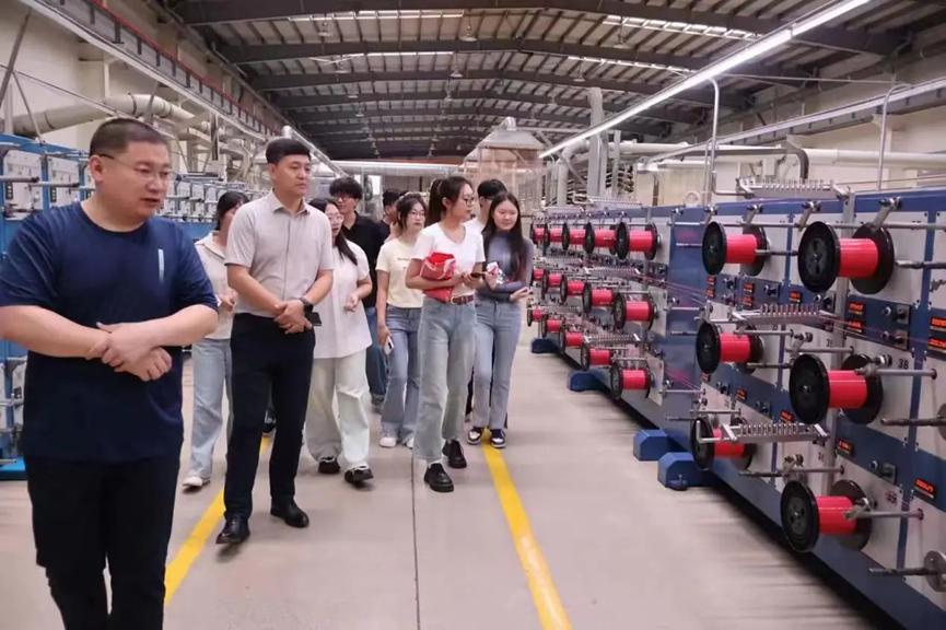 在鹤煌网业股份有限公司,总经理郑悦宁带领师生参观企业车间。在车间,小分队成员们真切感受到了公司在技术创新、品质控制及客户服务等方面的卓越表现。同学们围绕企业运营、技术创新等话题,与郑总展开了深入而热烈的探讨。最后,郑总向同学们发出诚挚的实习邀请,希望他们能成为鹤煌的一员,共同书写校企合作的新篇章。