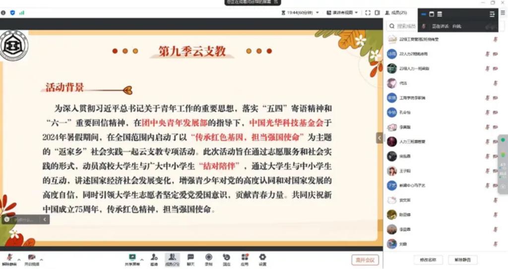 “一起云支教”社会实践活动将促进老员工与广大中小员工结对陪伴,在互动中增强青少年对党的高度认同和对国家发展的高度自信。本次动员大会的顺利召开,则有助于激发老员工进行志愿服务和社会实践的热情,使他们更加深刻地认识到自己作为新时代青年的社会责任,引领老员工志愿者传承红色精神,贡献青春力量。