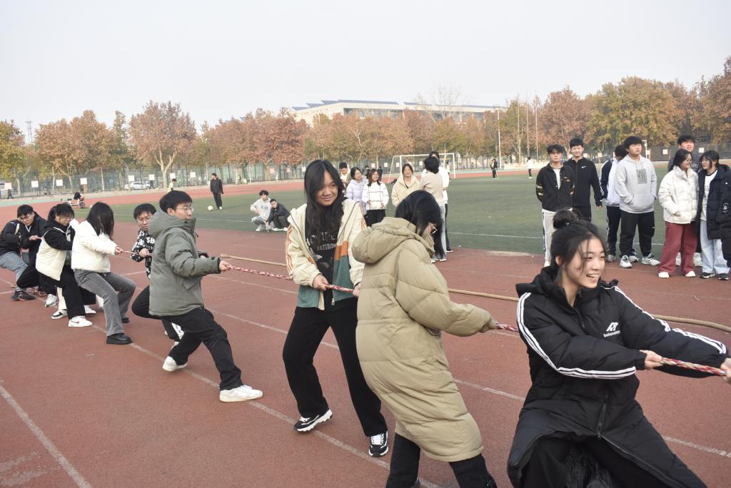 赛场上,各班级队伍严阵以待。随着裁判一声哨响,比赛正式开始。同学们紧紧握住绳索,身体后倾,双脚蹬地,每一个动作都凝聚着力量,彰显着决心。赛场边,呐喊助威声此起彼伏,震耳欲聋。汗水与激情交织,每一次的倒退与前进,都是对团队默契的考验,每一分每一秒的坚持,都是对自我极限的超越。同学们劲儿往一处使,不到最后一刻绝不松懈,充分展现了工商学子朝气蓬勃、昂扬向上的精神风貌
