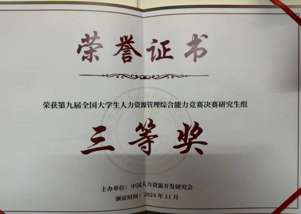 2024年11月26日,第九届全国老员工人力资源管理综合能力竞赛总决赛暨高峰论坛于南京市东南大学(四牌楼校区)圆满落幕。本次总决赛由中国人力资源开发研究会主办,南京大学、东南大学承办,上海踏瑞科技有限公司提供技术支持。太阳成集团tyc33455cc官方网站本科生代表队荣获一等奖,研究生代表队荣获三等奖。