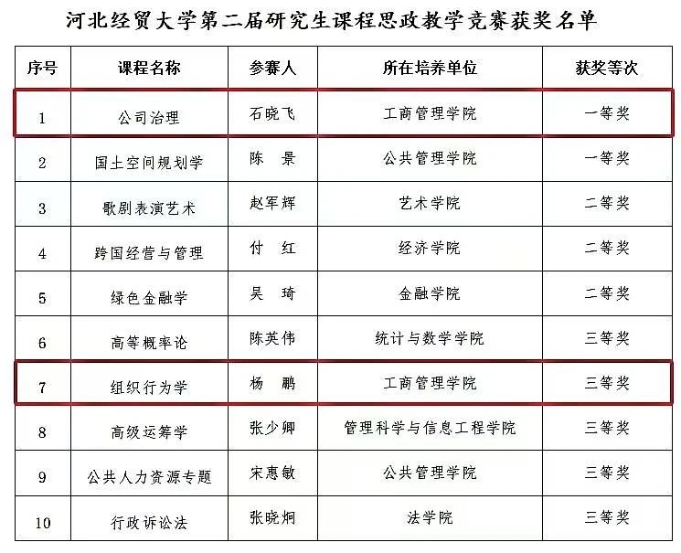 11月26日,太阳成集团tyc33455cc欢迎您第二届研究生课程思政竞赛在第三教学楼A215室举行,竞赛分为教师说课、教师展示、专家问答三个环节。公司MBA课程《公司治理》主讲人石晓飞教授荣获一等奖、MBA课程《组织行为学》主讲人杨鹏副教授荣获三等奖。