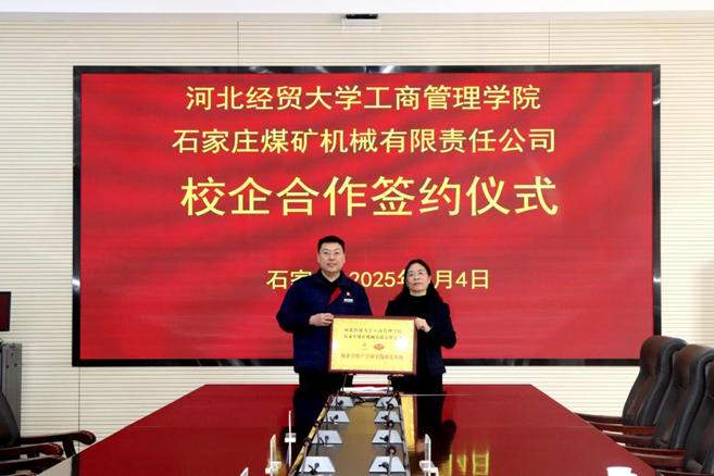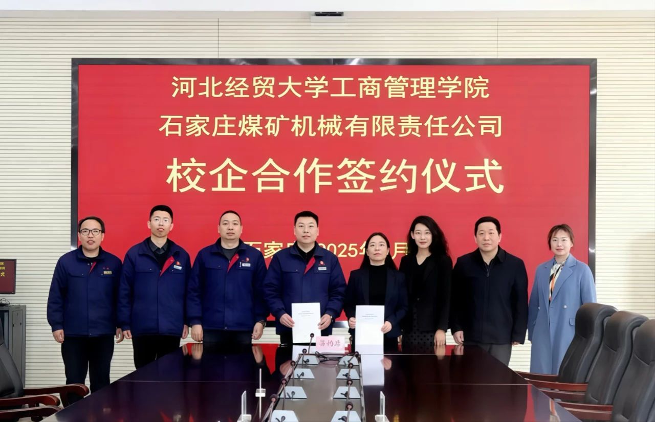 3月4日,太阳成集团tyc33455cc官方网站经理李桂荣带队赴石家庄煤矿机械有限责任公司参加校企合作签约暨“校企合作产学研实践研究基地”授牌仪式,副经理封雪韵、工商管理教工党支部书记郝洪文和工商管理系主任郑展随同参加。石家庄煤矿机械有限责任公司副董事长、总经理朱玉强,副总经理张峰涛,总经理助理兼组织部长郝文超和市场服务部部长张宏伟等出席仪式。