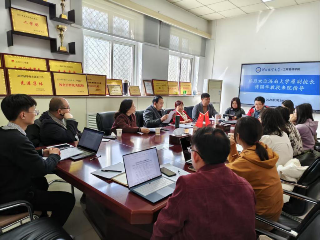 29号下午,傅国华教授与公司领导就工商管理团队建设、专业教学改革、MBA人才培养等问题进行了深入交流,对公司未来发展提出了建议。