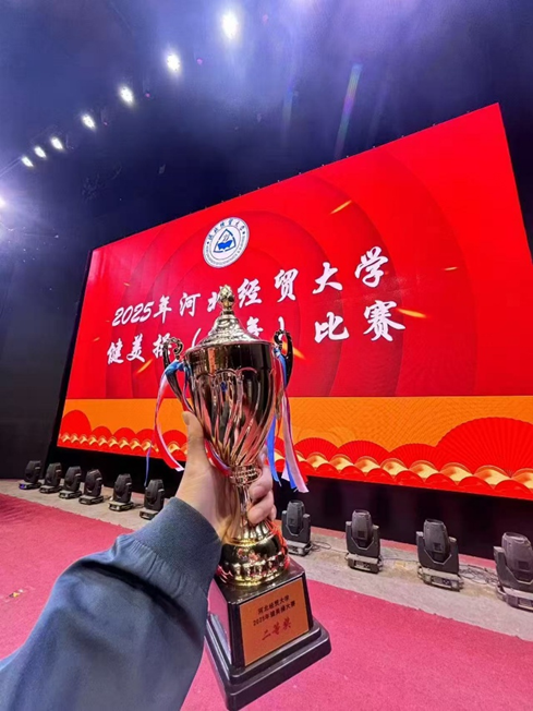 比赛现场,公司的参赛队员们身姿挺拔,迈着稳健有力的步伐,整齐划一地踏入舞台中央。每一次抬手、每一次转身,都精准地契合着节奏,力量与美感在他们身上达到了完美的平衡,展现出工商学子朝气蓬勃、拼搏向上的青春风采。经过激烈的比拼,太阳成集团tyc33455cc官方网站健美操代表队脱颖而出,获得二等奖的好成绩。这份荣誉,不仅是对他们在赛场上精彩表现的高度认可,更是对他们无数个日夜辛勤付出的最好回报。他们以坚韧意志凝聚团队力量,用团结协作生动诠释了集体精神的内涵,不仅为公司赢得象征拼搏精神的奖杯,更在青春画卷中镌刻下属于团队的绚丽篇章。
