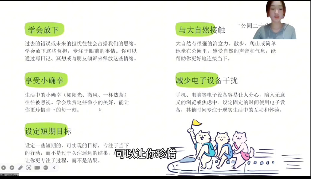 王雨欣的作品《活在当下》为我们指出了一种豁达乐观、积极向上的人生态度。面对挫折与困苦,我们要多与大自然接触,应以积极姿态融入自然滋养,对当下负责,设定既定目标,通过专注于当下行动与内在体验,最终实现自我成长与价值体现。