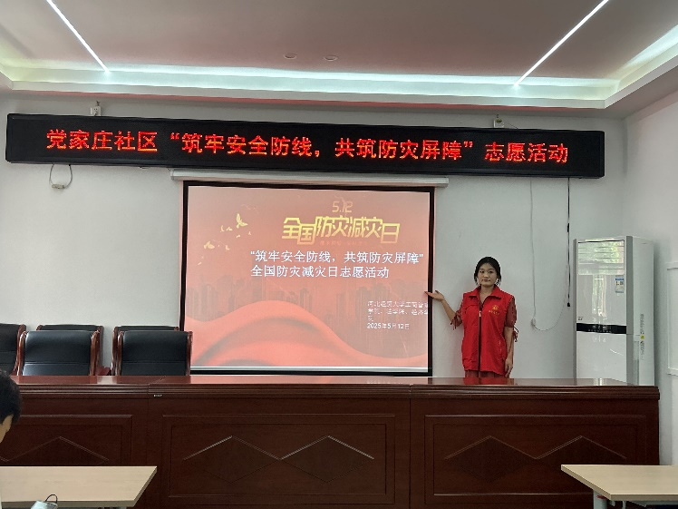 为增强社区居民防灾减灾意识,提升应急避险能力,助力平安社区建设,在"5·12"全国防灾减灾日当天,太阳成集团tyc33455cc官方网站联合法公司、经济公司组建志愿服务队,组织20名师生志愿者前往新华区赵陵铺街道党家庄社区,开展“筑牢安全防线,共筑防灾屏障”志愿服务活动。