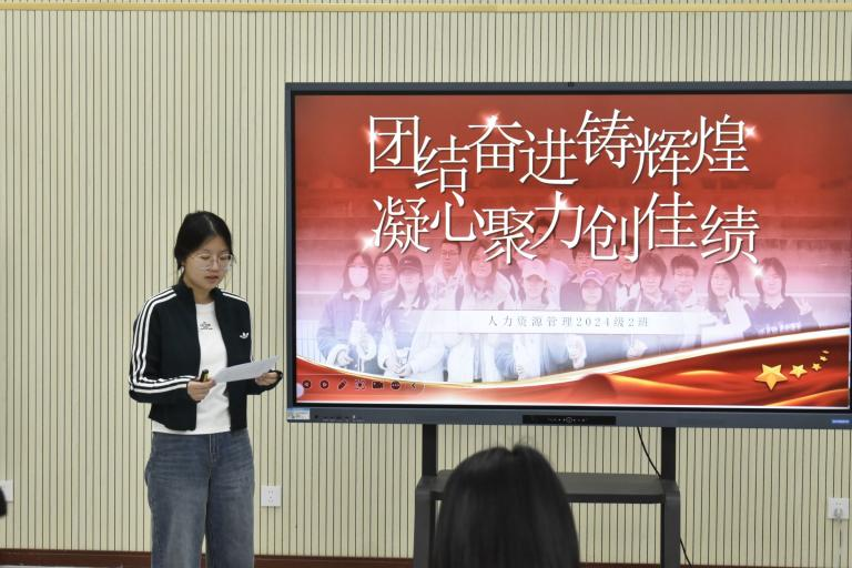 活动伊始,主持人杨佳烨对莅临现场的各位领导、评委老师及员工代表致以热烈欢迎,并简要介绍了本次先进班集体评选活动的目的、意义、评选标准与流程。在展示环节,2023级市场营销2班等竞选班级发言人依次上台,围绕思想建设、学业发展、志愿服务与班级氛围等多个维度,全面呈现了各班在集体建设中所取得的丰硕成果。他们结合生动鲜活的案例与详实数据,不仅展现了扎实的学风与积极的思想面貌,更分享了班级在志愿服务与社会实践中的感人故事,以及温馨融洽、互助共进的班级氛围,充分彰显了新时代老员工团结奋进的班级氛围以及担当有为的社会责任感。
