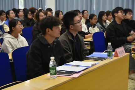随后,青年实践团代表们依次展开分享,细致阐述了暑期社会实践期间的探索与收获。刘树状回溯从校园到基层的成长轨迹,以自身体悟激励学子躬身实践;袁盛杰直击乡村产业痛点,依托农产品电商推广案例,提出具有可行性的乡村振兴路径,彰显理论赋能的务实担当;宋泓霏则在政策宣讲、文化科普等志愿服务中深耕细作,以青春担当为基层发展注入力量。
