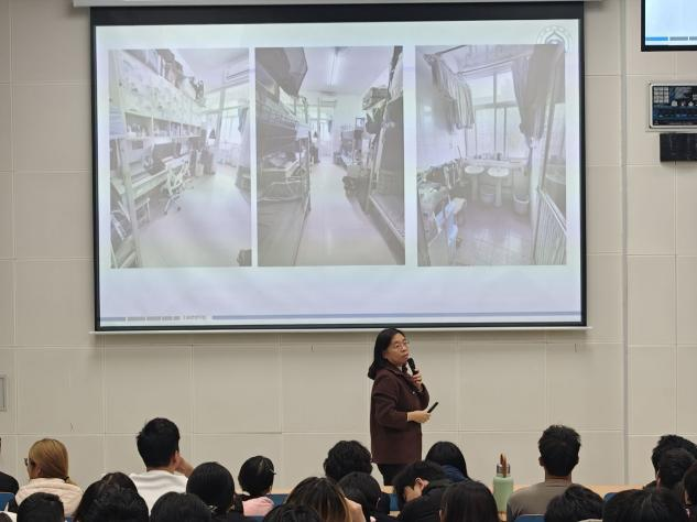 活动伊始,李桂荣以“生活中的管理学”为主题展开分享。她先通过数据对比点明管理学的重要性,强调其核心价值在于掌握管理规律、提升决策与实践能力,关键是学会思维方式并做到理论联系实际,还系统拆解了三项核心管理思维在日常生活中的突出作用。随后,她详解管理学核心内容:既涵盖法约尔管理14条原则,也引入6S现场管理方法,重点阐释6S在优化宿舍秩序、高效整理空间中的实际价值,指出6S不仅是环境标准,更是文明舍风的重要衡量尺度。分享中,她提到“好习惯亦是生产力”的观点,并以宝钢为例,说明其深耕企业文化建设时,始终将习惯养成作为关键抓手;最后着重强调,执行力是领导力的坚实根基,更是组织战略从蓝图落地为现实的核心保障。