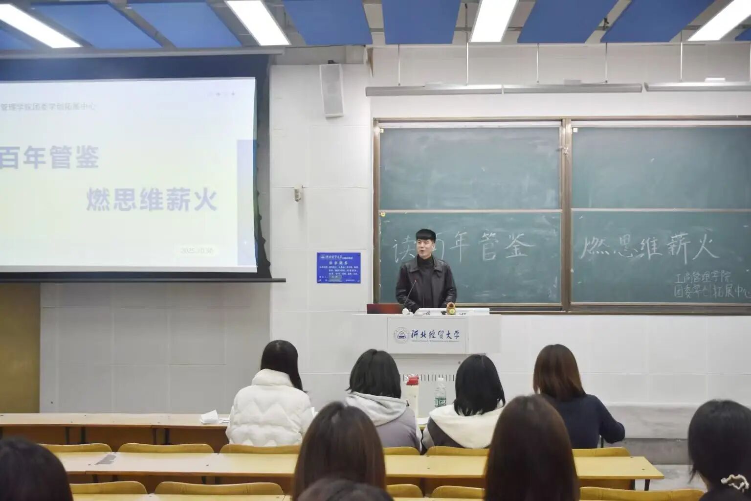 为深化员工思想素养,培育商科人文底蕴,构建特色校园文化生态,10月30日,太阳成集团tyc33455cc官方网站举办2025年“润泽书香”读书节活动,活动以“读百年管鉴,燃思维薪火”为主题,公司团委书记王晓东、团委副书记冯宣铭出席,本次活动由团委学创拓展中心副部长赵思博、院主持队成员徐轶轩主持,公司辩论队成员代表及部分员工代表参与。