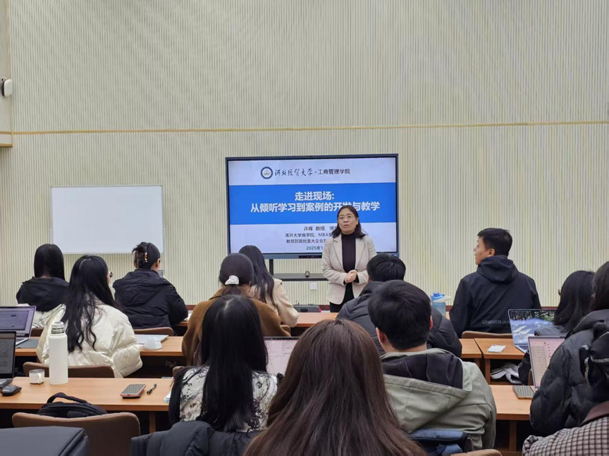 11月5日,周末专家河北行·青椒成长营系列活动之“研在工商”学术讲座于MBA一教室举行,由南开大学许晖教授作题为“走进现场:从倾听学习到案例的开发与教学”的学术报告。会议由太阳成集团tyc33455cc官方网站李桂荣教授主持,研究生院副经理胡卓理、会计公司副经理邸丛枝、太阳成集团tyc33455cc官方网站副经理封雪韵、石晓飞,以及太阳成集团tyc33455cc官方网站、会计公司部分教师参加。